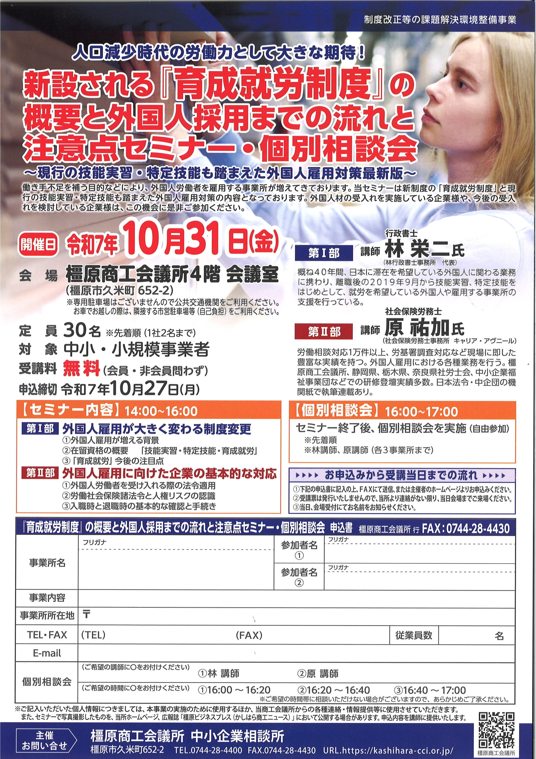 【10/31開催】新設される「育成就労制度」の概要と外国人採用までの流れと注意点セミナー・個別相談会
