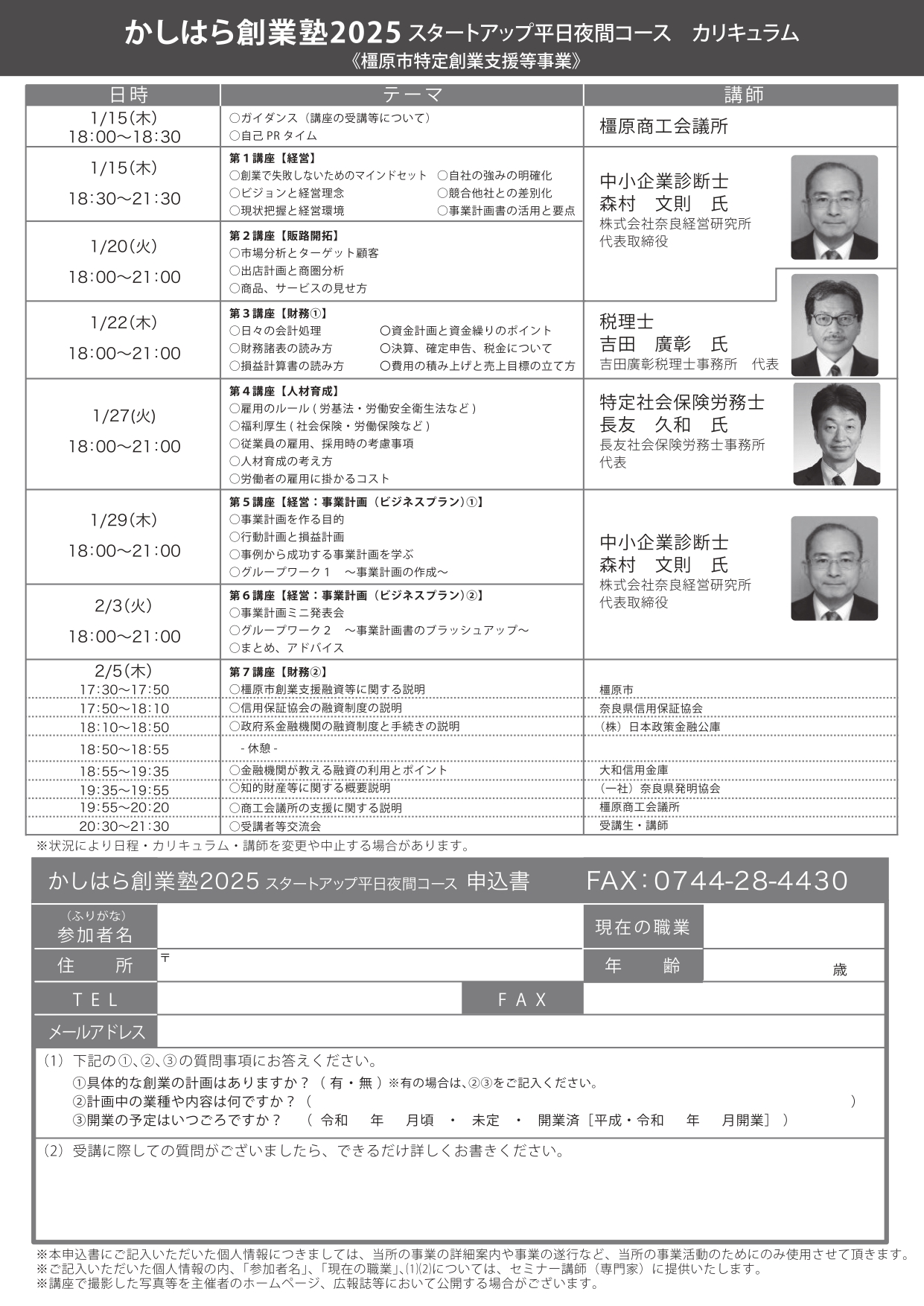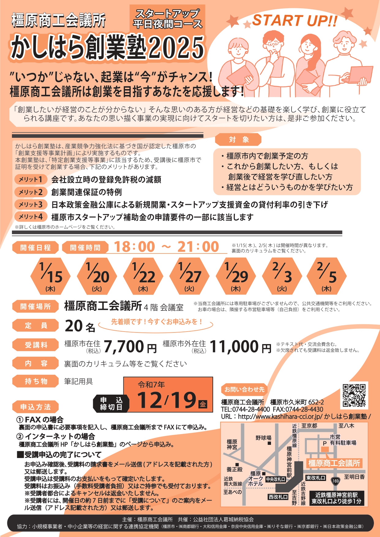 かしはら創業塾2025【スタートアップ平日夜間コース】