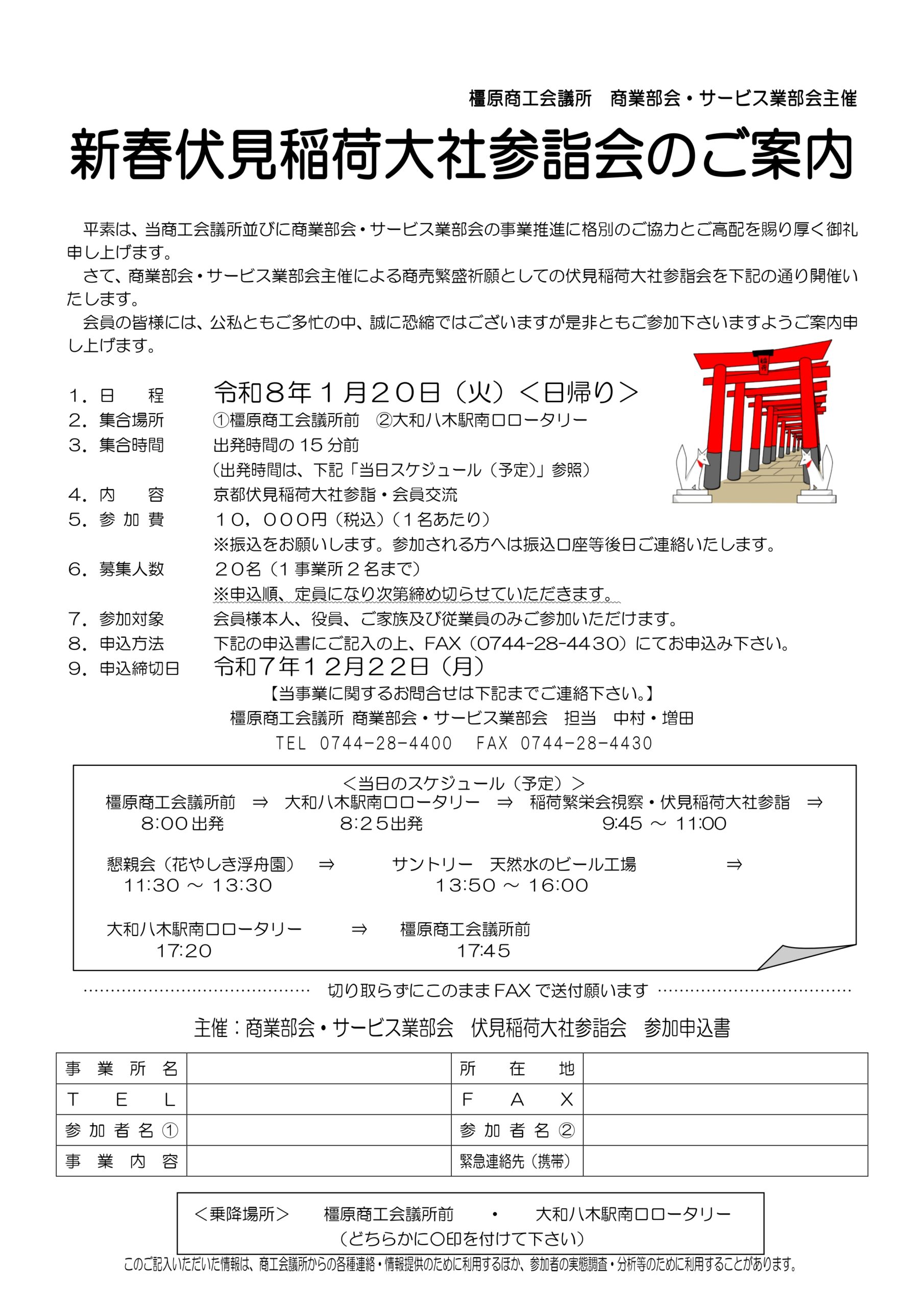 【R8年1/20開催】新春伏見稲荷大社参詣会のご案内