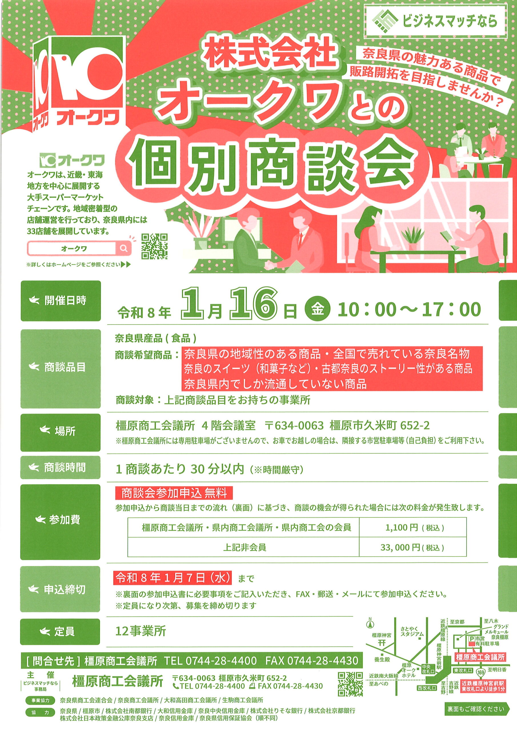 ※橿原商工会議所には専用駐車場がございませんので、お車でお越しの場合は、隣接する市営駐車場等(自己負担)をご利用下さい。