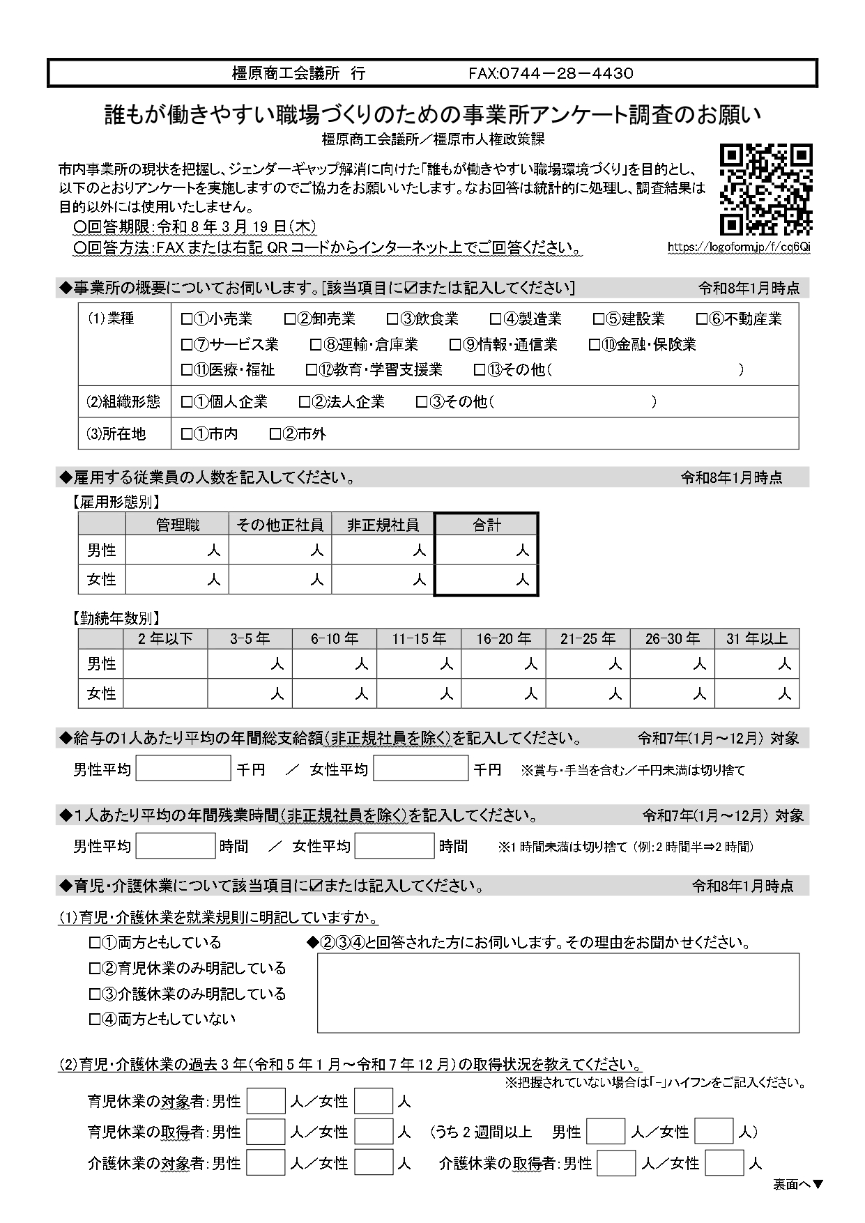 「誰もが働きやすい職場づくりのための事業所アンケート調査」ご協力のお願い