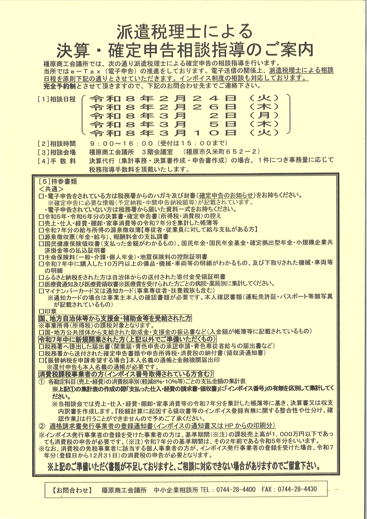 【R8.2/24~】派遣税理士による決算・確定申告相談指導のご案内